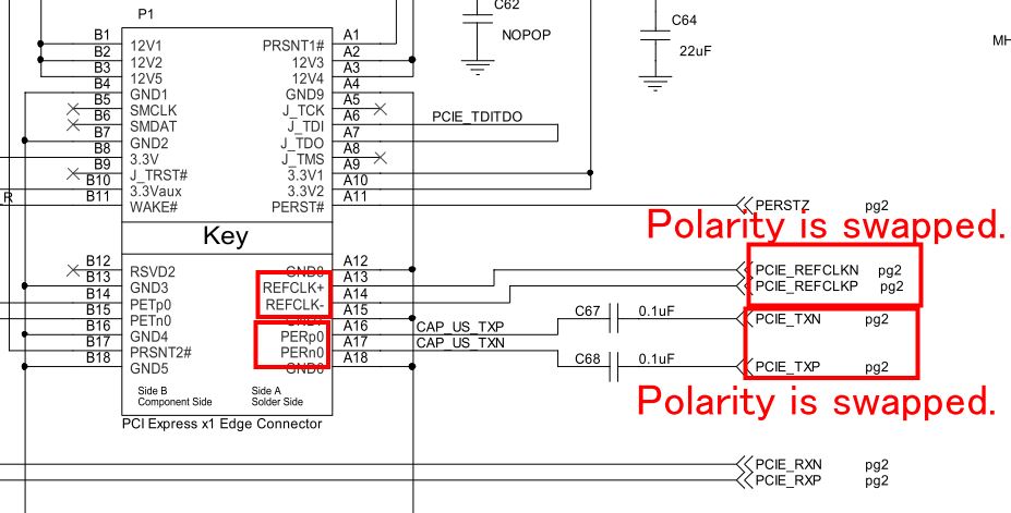 In the schematic of this document in page 38, I see some signal connection which polarity are swapped. Please see the below for the swapped signals.