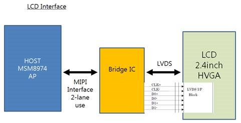 First, LCD have a LVDS Block(CLK+/-,Data0 +/-,Data1 +/-) and only 2-lane data.