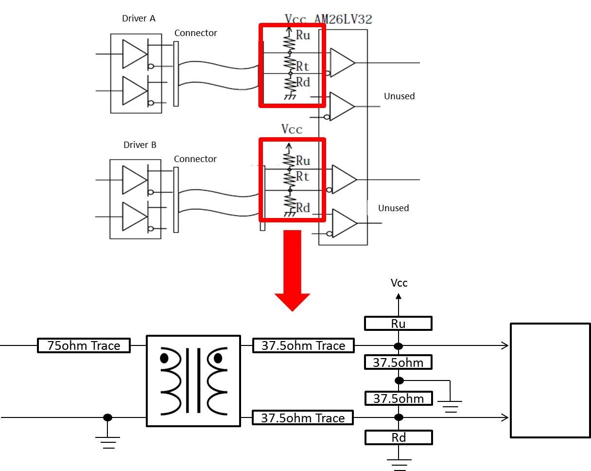 Also according to Japanese application note, there is the recommended circuit if several drivers connect to respective cable.