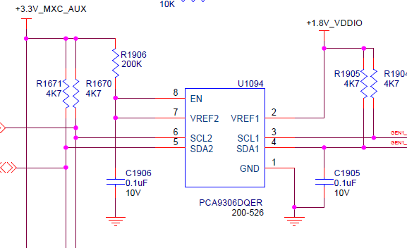 In our design, PCA9306 is doing the I2C bus level shifting from +3.3V I2C bus to +1.8V I2C bus.