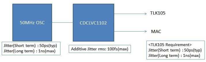 The Jitter specifications of oscillator are same value with TLK105 requirement.