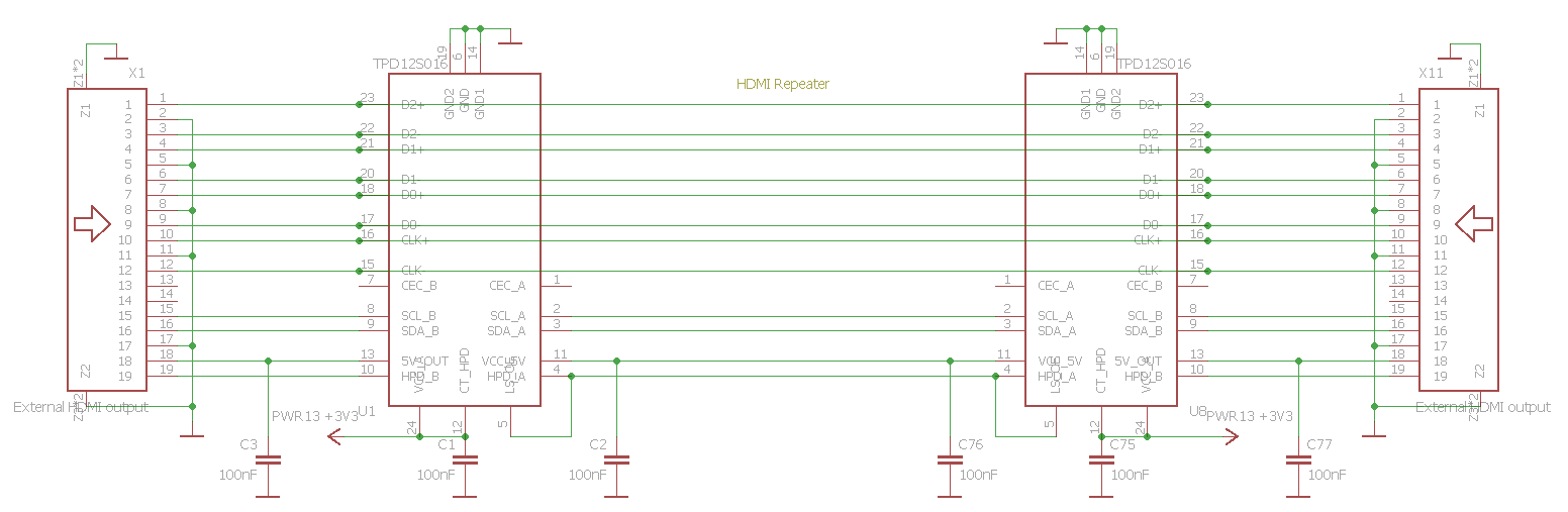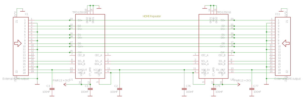 Is it possible to build HDMI repeater using TPD12S016 chip on input and output. I noticed the problem regarding I2C level shifter - on input side after level shift signals (SDA_A and SCL_A) will have low level Vola=Vcc*0.17, but on output side it request low level Vila=0.082*Vcc. It means that it will not work, am I right ? Do you have any easy solution of this problem ?