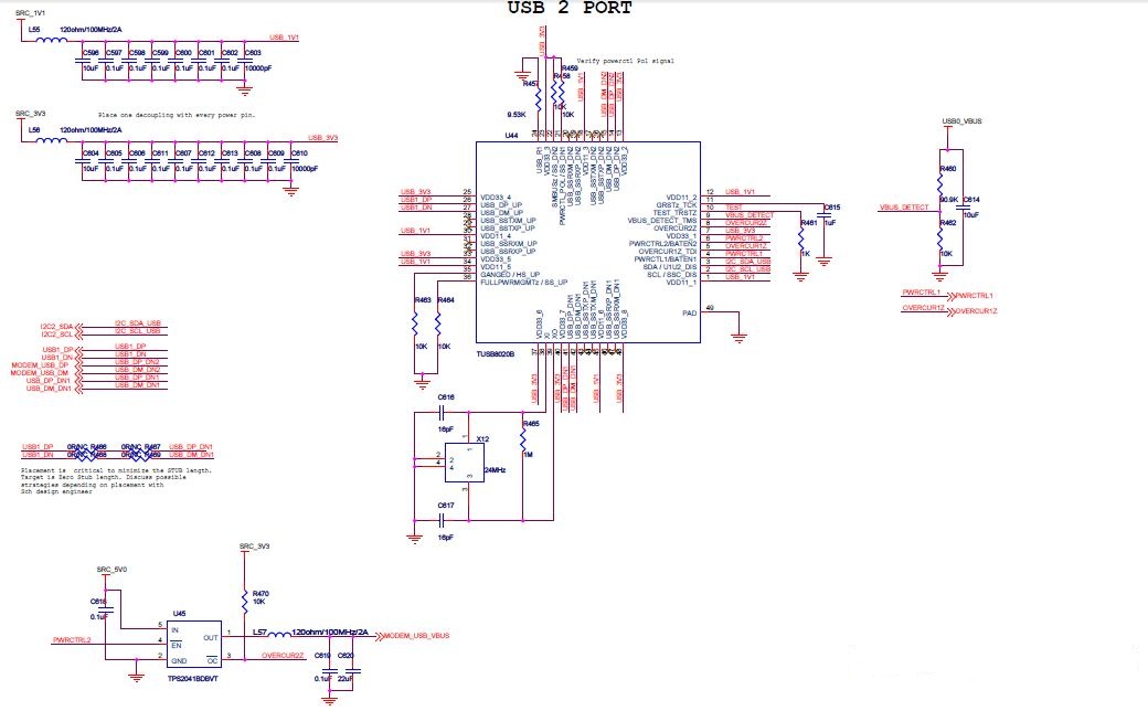 Please help to review the Schematic for 2 Port USB based on TUSB8020B for the Project: In Vechicle Infotainment system.