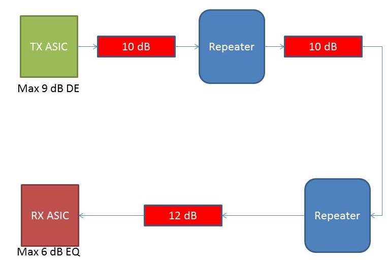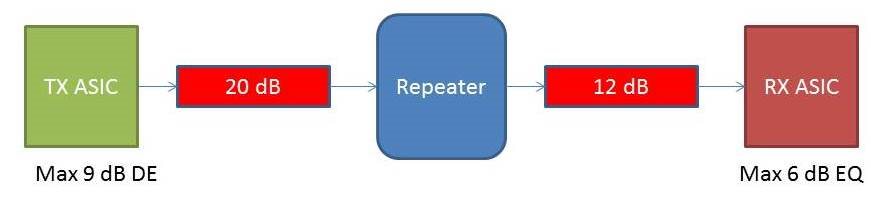 The application involves link training. I read that DS80PCI800 can support link training but the next version DS80PCI810 / DS125BR820 has a more linear output and thus more suitable for link training. To equalize the 12 dB post channel loss, can I use DE from my repeater or just rely on the DE from the TX ASIC? Will it affect the link training?
