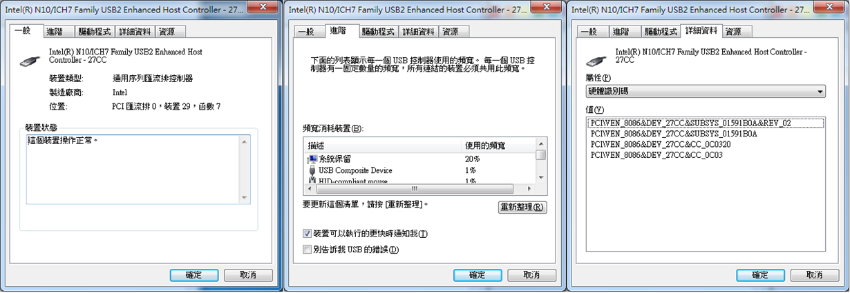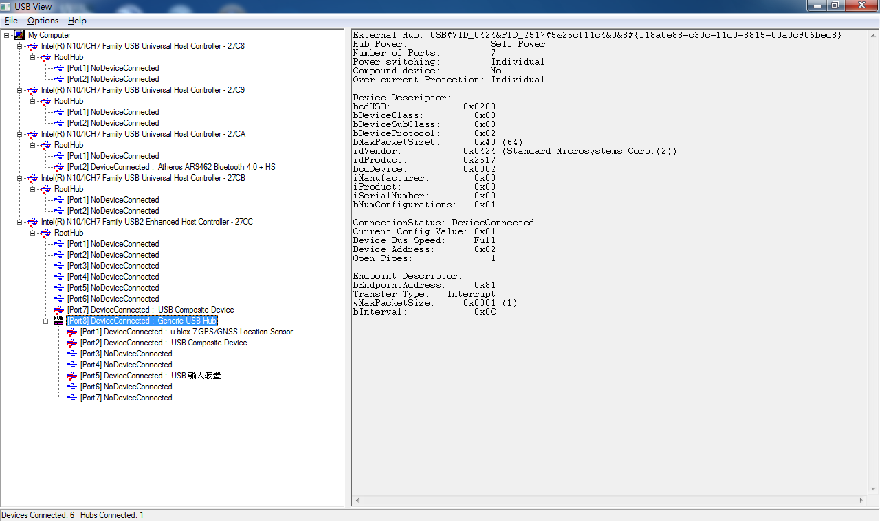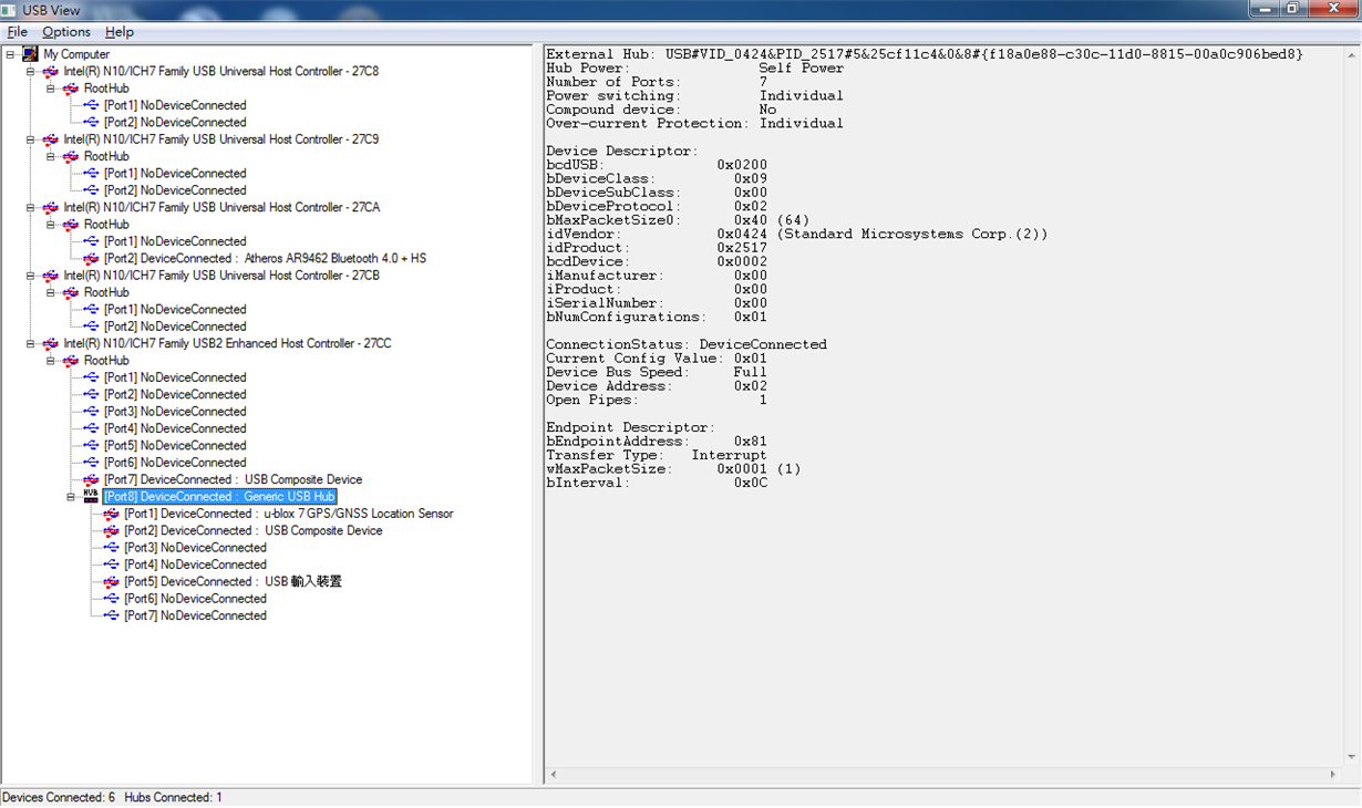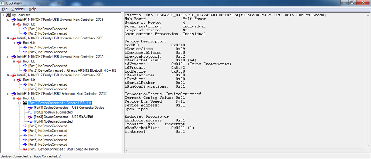 I observe there are some devices in "Inter(R) N10/ICH7 Family USB2 Enhanced Host Controller - 27CC" before I connect TUSB8041-Q1 to the panel.
