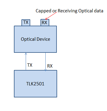 Optical Device RX(Capped or receives optical signal) ⇒ TLK2501 RX(DINRXP/ DINRXN)