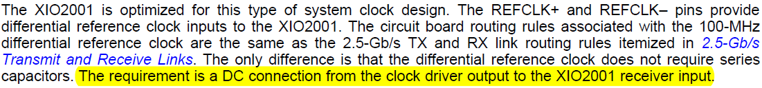 XIO2001 REF clock requires DC connection. If AC couple used, is below dc bias circuit ok for use? thanks