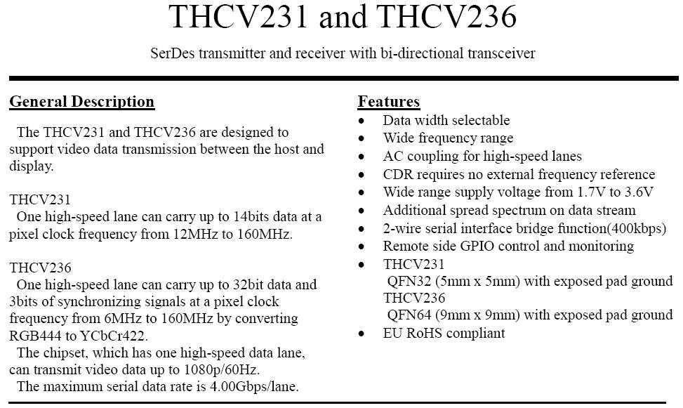 Does TI have a solution which similar with THCV231 and THCV236 below and can support HiSPi? Thanks ~