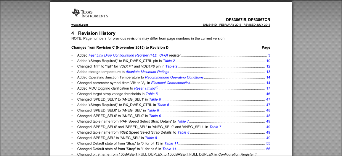 DP83867IS datasheet (SNLS504) seems first revision. On the other hand, DP83867IR datasheet (SNLS484D) has been revised at JULY 2016.