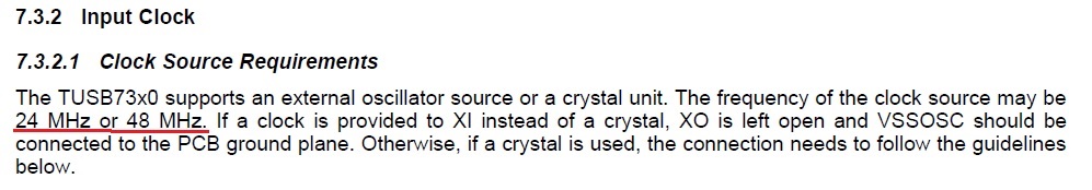 Could you kindly help to check below 2 items about TUS7320's configration & input clock's crystal selection: