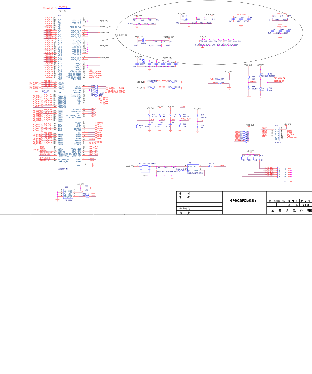 My customer used XIO2001PNP, and the device sometimes can find PCI peripherals, but most time it can't. they measured the 33MHz clock did work. I attached the schematic as below. could you please help check it?
