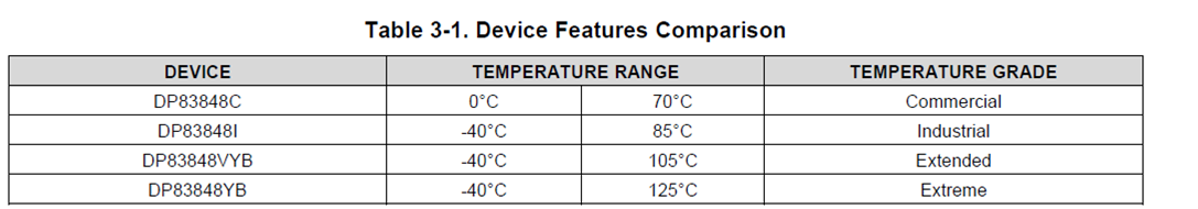 Table 3-1 indicates the DP83848YB is an Extreme temperature grade device from -40C to +125C. The maximum die temperature is however a maximum of +121.5C.