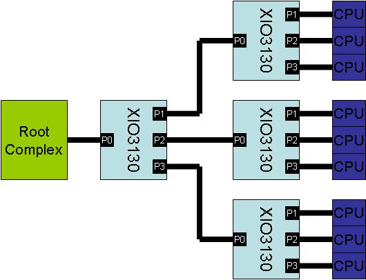 XIO3130 connect to 3 ports; can I daisy chain multiple XIO3130 to connect all 9 CPUs ?
