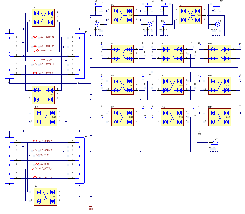 The schematic for the TPD4E110DP Eval board is not legible. I can't see the reference designators. Could someone help get a better schematic?