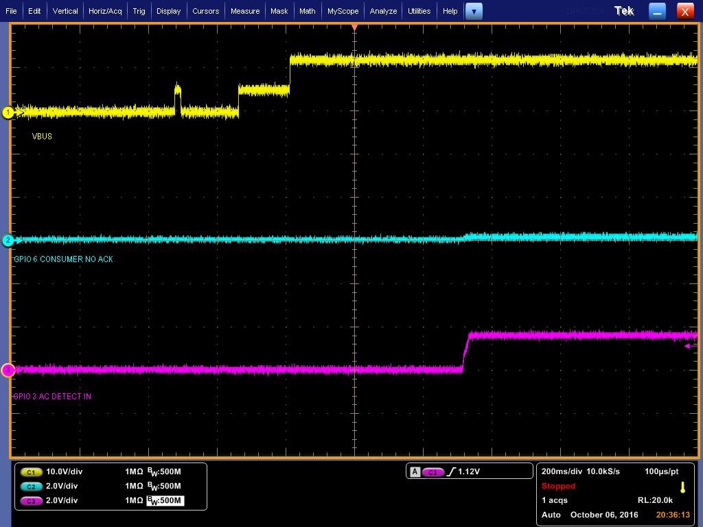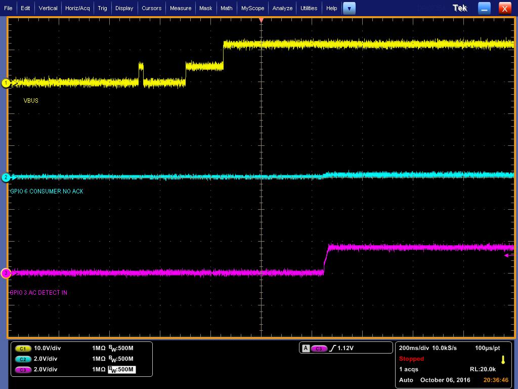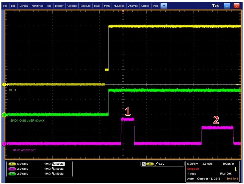 Even 'AC_DETECT' GPIO pin goes high like #2 waveform, 'CONSUMER_NO_AC' never moves