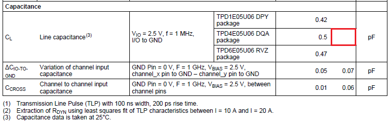 The background of the question is my customer is checking a difference of the parameter between TPD4E05U06DQAR and PUSB3F96(NXP).