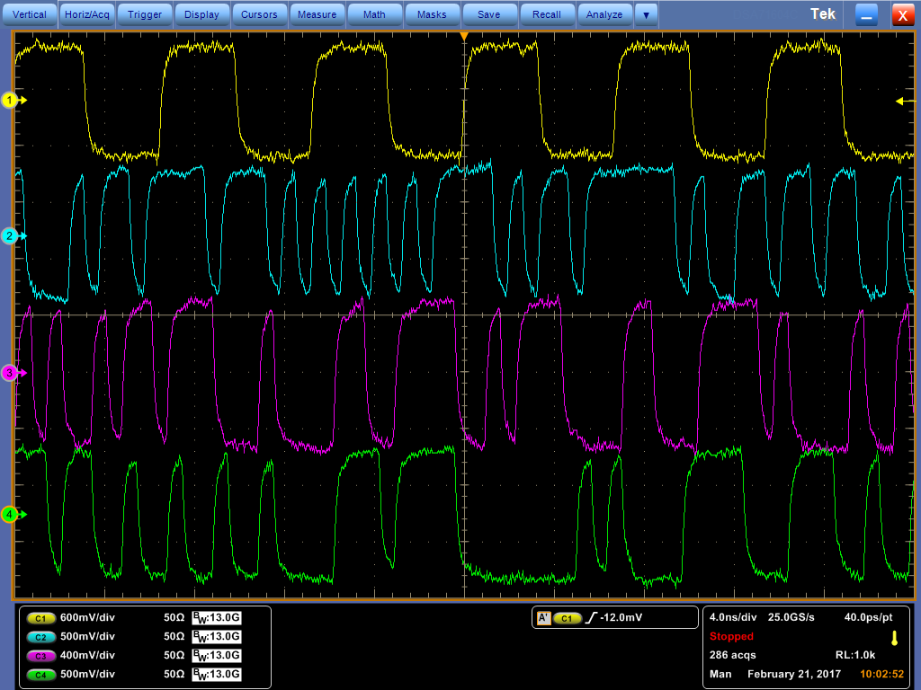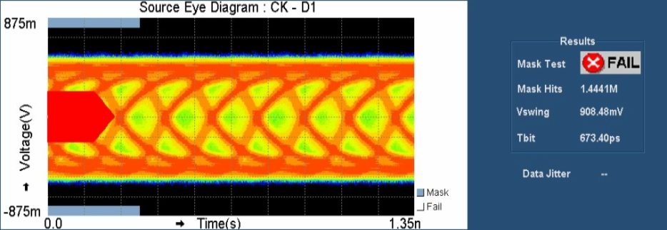 Under the signal detect circuit enabled condition, the output of the TMDS181 was failed at Eye test as bellow.