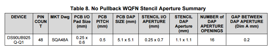 Please see Table 8. No Pullback WQFN Stencil Aperture Summary in Data Sheet P48.