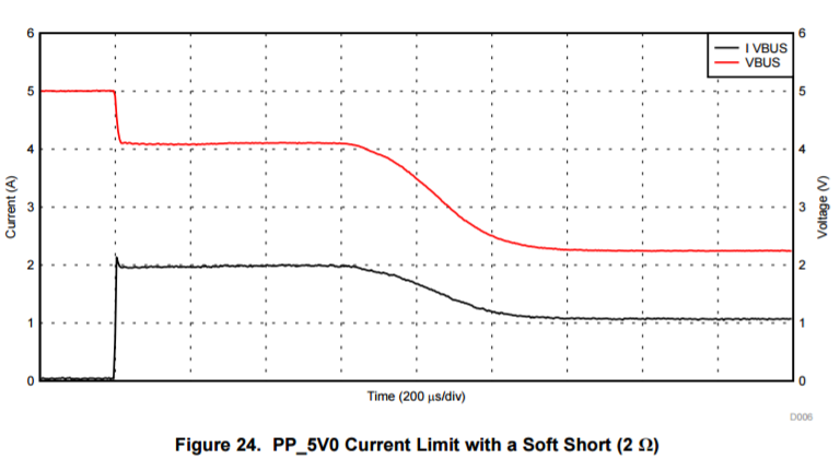 Likewise from Figure 24(soft-short), the expected time for over-current protection to occur is approximately 1.2ms.