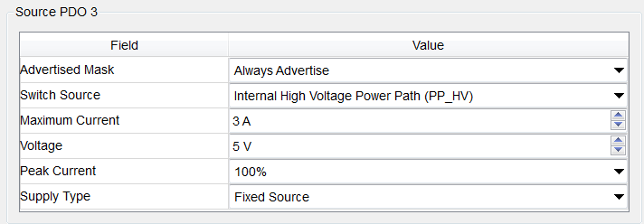 As title, my customer want to use PP_HV to source 5V/9V/15V, and just disable PP_5V path, I have tried to config it with TPS6598x Application Customizer tool, but it seems once i disable the PP_5V path, the typeC port can not support power source anymore.