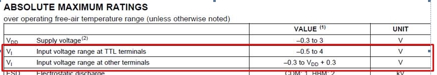 The input voltage range are defined on the datasheet as the following.