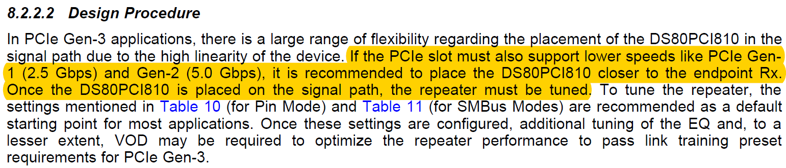 May I know where is the best placement for PCI810 ,Can I base on Gen3 SPEC to place DS80PCI810 on 6~8db loss for 4GHz