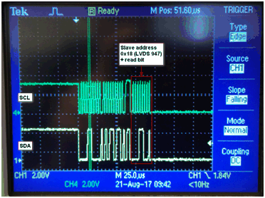 This situation is visible in the below image where the last byte is the slave address of the LVDS serializer chip.
