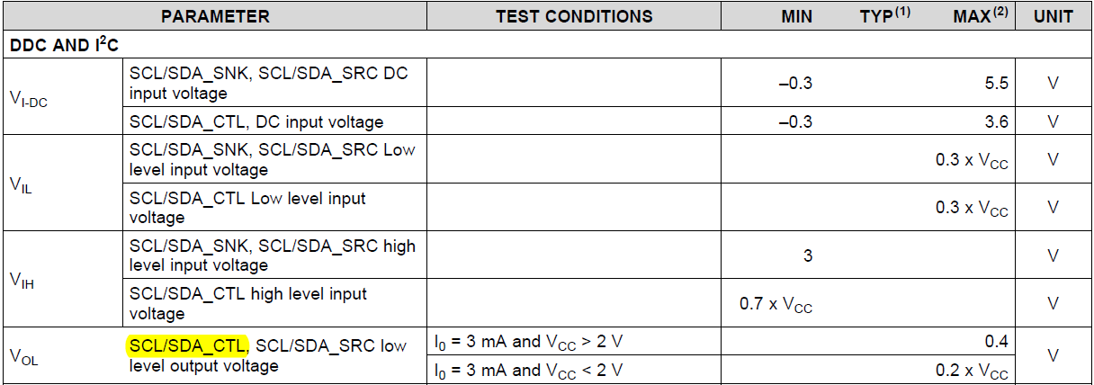 Correct : SDA_CTL, SCL/SDA_SNK, SCL/SDA_SRC low level output voltage
