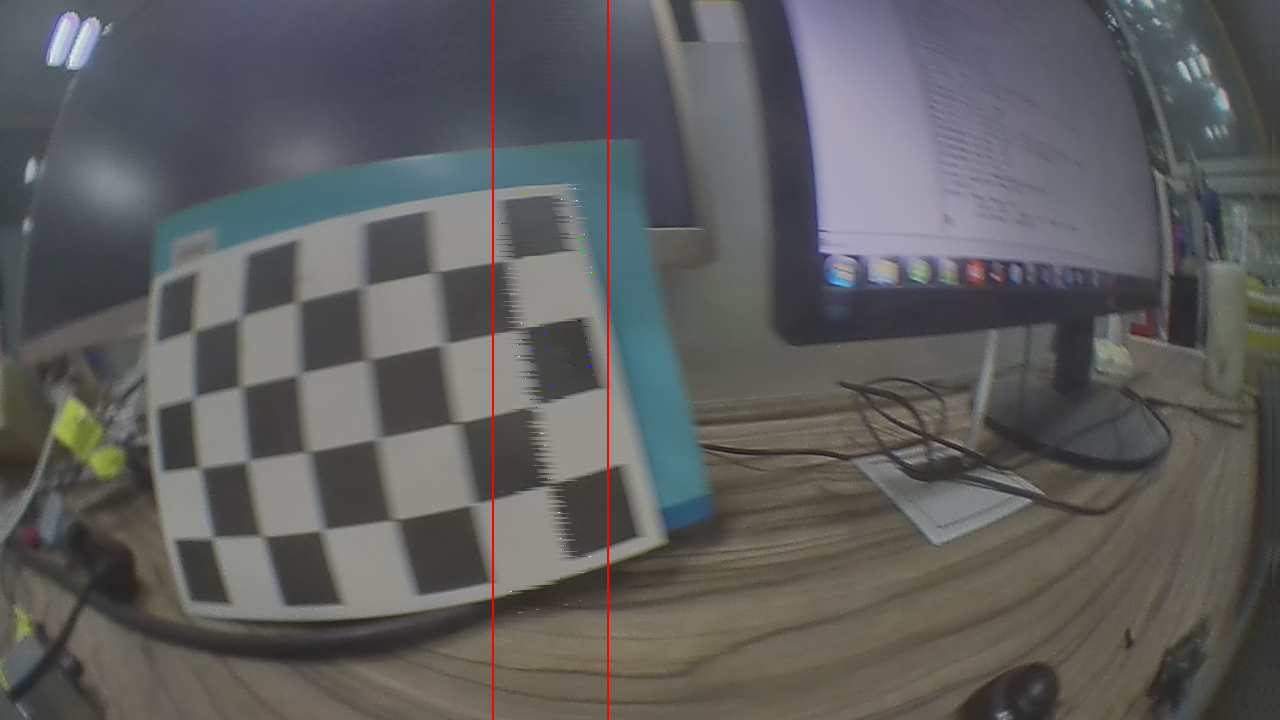 but when we are using the camera, the image that we captured is showed up, as you can see that on the left-center of the image, there is about 80 pixels error and some noise from top to bottom