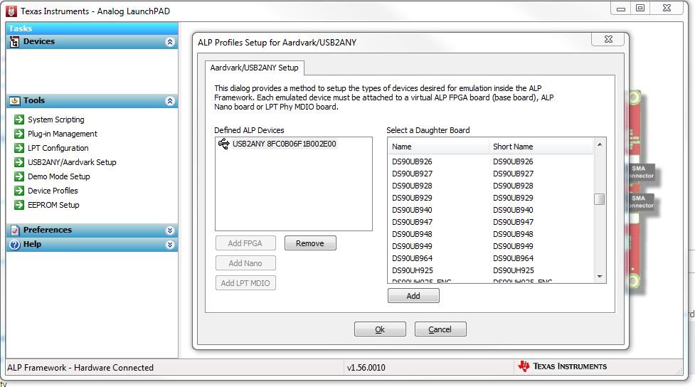 I have a DS90UB954-Q1EVM bord and when i launch ALP i don't have in Daughter Board list DS90UB954 as you can see in printscreen below.