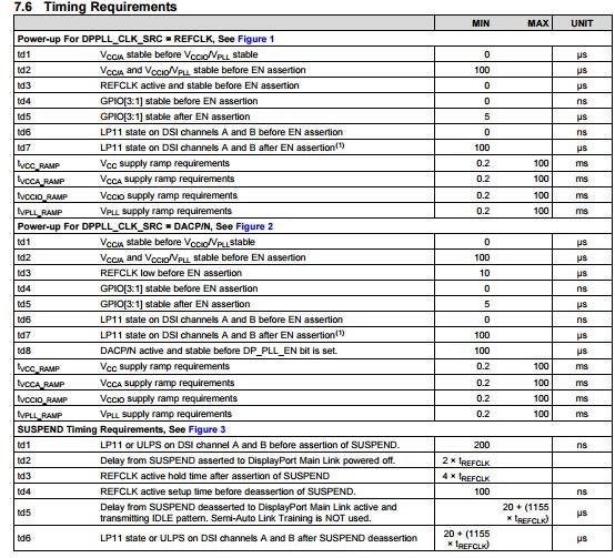 Question 1:Could you provide the typical Timing Requirements to customer.They want know how much Timing Requirements when SN65DSI86 in normal working.And The delay of a single frame input to output time is they most care about.