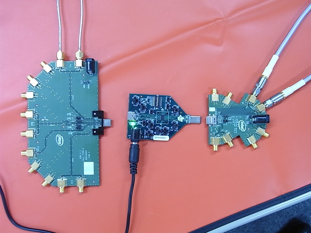 Intel test fixture board (SMA to Type-C) -> TUSB544-EVM -> Intel test fixture board (Type-C to SMA)