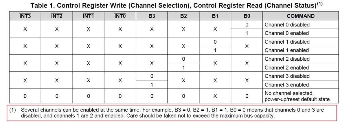 Additional, when the specific channel(s) is(are) chosen by writing corresponding bit(s) in control register, is(are) the channel(s) always be active before control register was written in a different value? Or the channel(s) is (are) just valid for one I2C-access after the control register is configured?