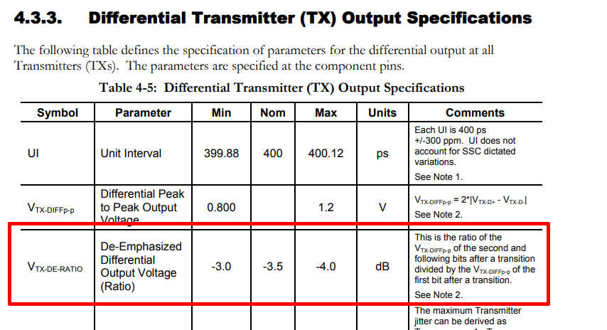 - Tx, Deemphasized Voltage Ratio (PCIE 1.1)