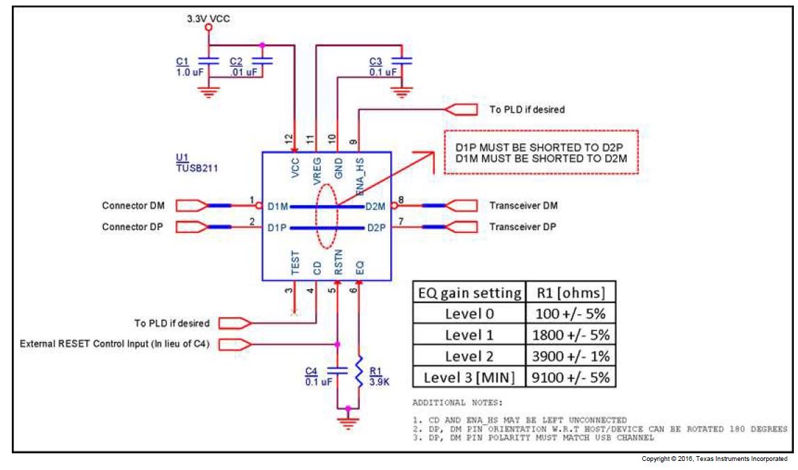 My customer wants to use the device TUSB211. But the datasheet says the D1P must be short to D2P. We want to check why. Thanks.