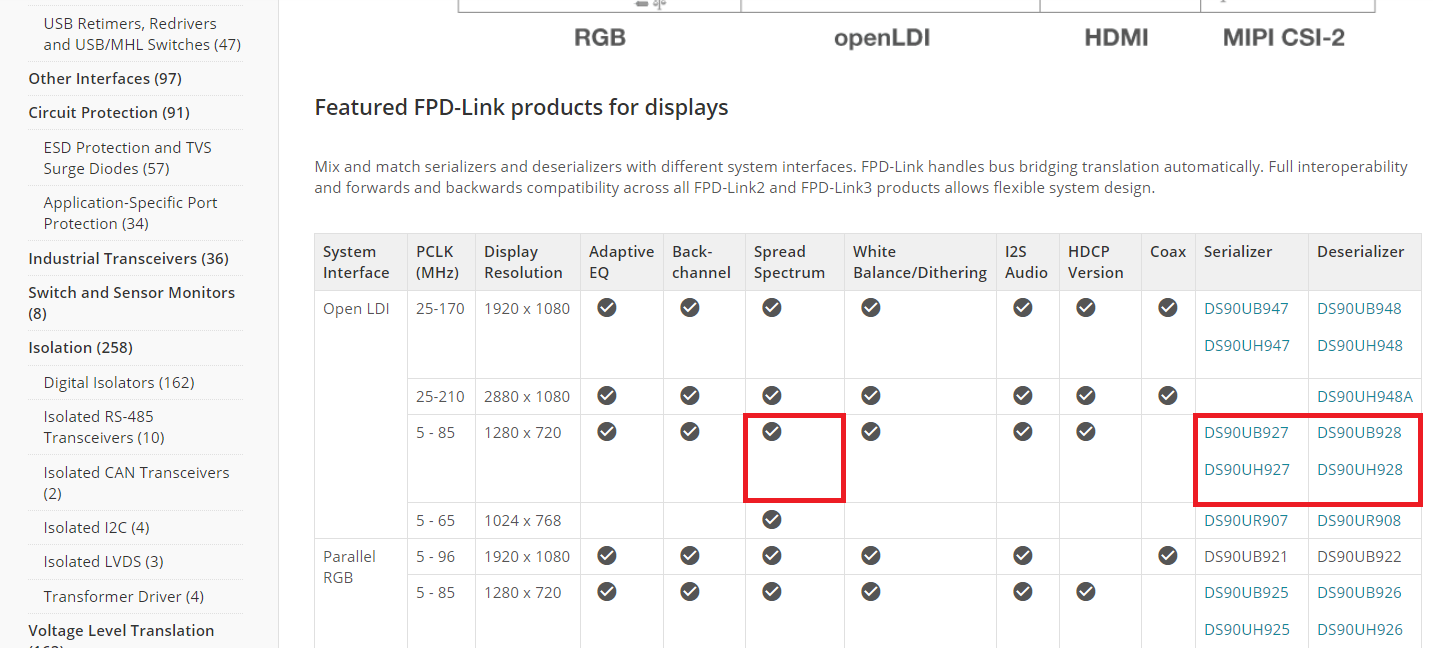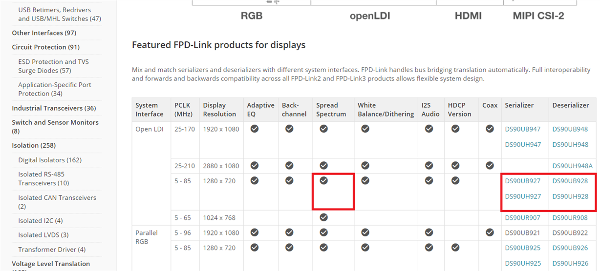 [ DS90UB927-Q1 & DS90UB928-Q1 ] Spread Spectrum Support on OLDI Devices