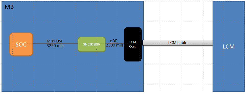 - Our layout routing is as below(DSI and eDP signal), could you help to evaluate LCM cable maximum length? What is the acceptable cable length?