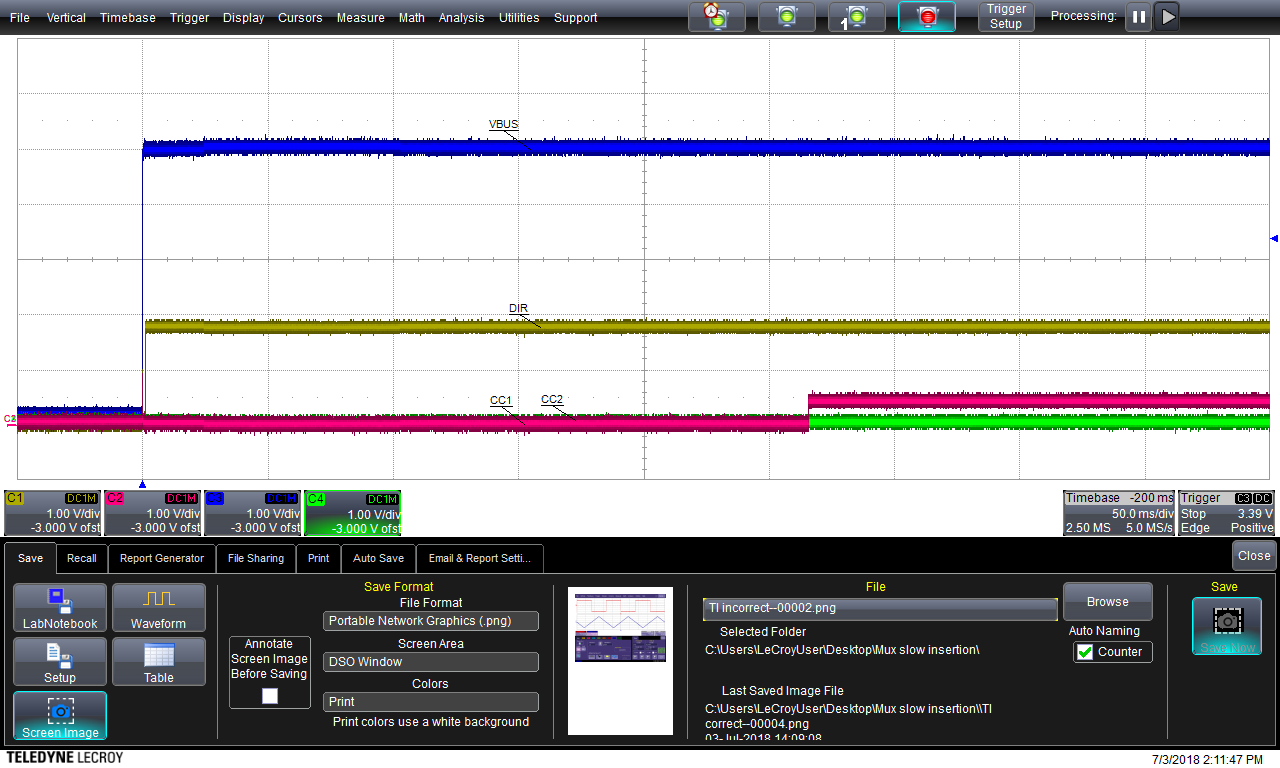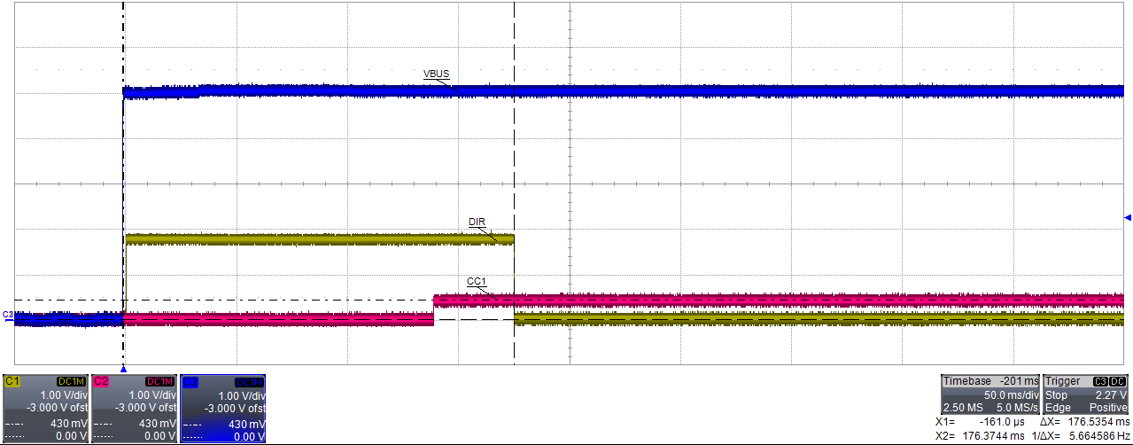 I have exactly the same issue that was discussed in "TUSB321 not detecting cable inversion" thread, i.e.: