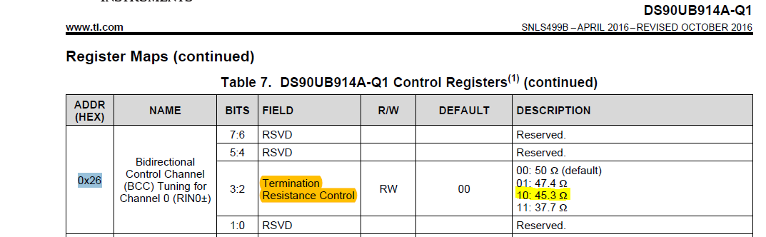As for 0x26 (0x46 in their case since they used RX channel 1), why resister needs to be changed to 45.3 Ohm?