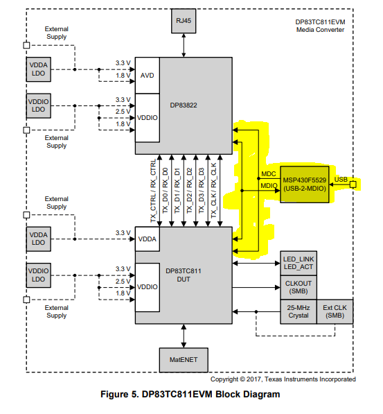 I was planning to layout a board that contains the 2 phys, just to use them as a converter but I am not sure if the 2 phys alone are going to work without MCD and MDIO lines connected to them. Will the following configuration work (without the highlighted components) without needing any firmware ore configuration?