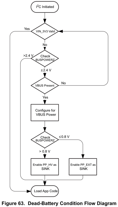 For a board powered from USB-C in dead battery mode, with BUSPOWERZ configured to 1.8V to power the entire system through the PP_HV internal load switch, will it negotiate the power required before it closes the switch and not close the switch if the PD cannot provide the power required?