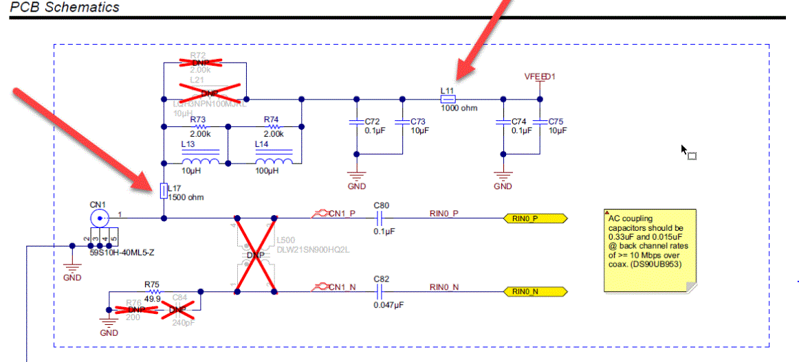 From the reference about the EVM of DS90UB934 we can see the schematic as below picture.