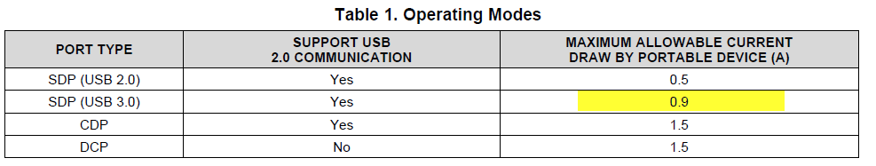 let me double confirm it, so when detect USB3.0 plug in, the output current still can support 1.5A? from the datasheet, SDP(USB3.0) , only provide output current 0.9A.