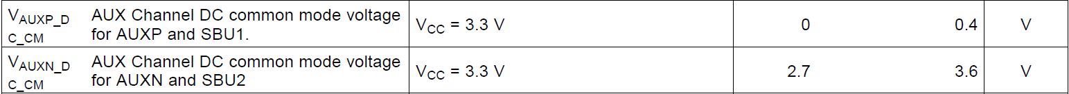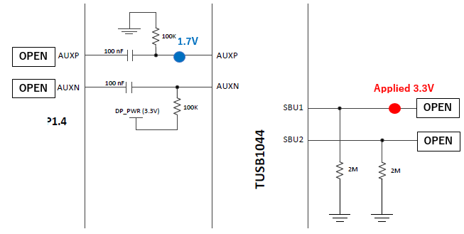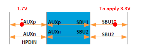 If they apply 3.3V to SBU1 pin, AUXp voltage is around 1.7V.