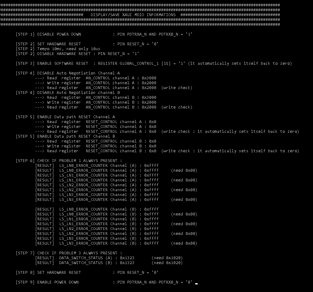 All values can be see in XAUI_MDIO_REGISTER_CHANNELA2.txt