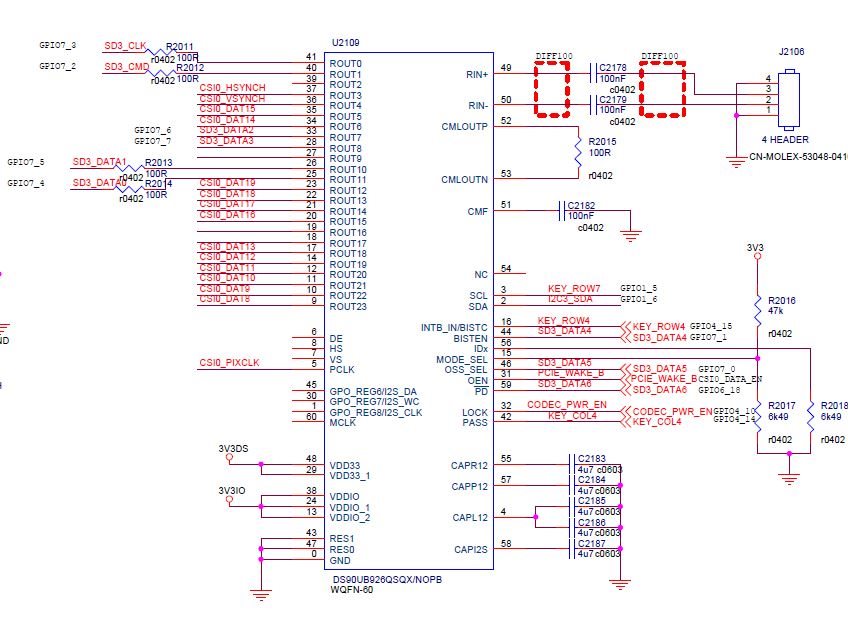 so far I can get the deserialzer's I2C address, but cannot get the address of the serialzer and image sensor. Seems the deserializer did not work, so do you know what is going on? or should I configure any other pin else? the circuits are as below: