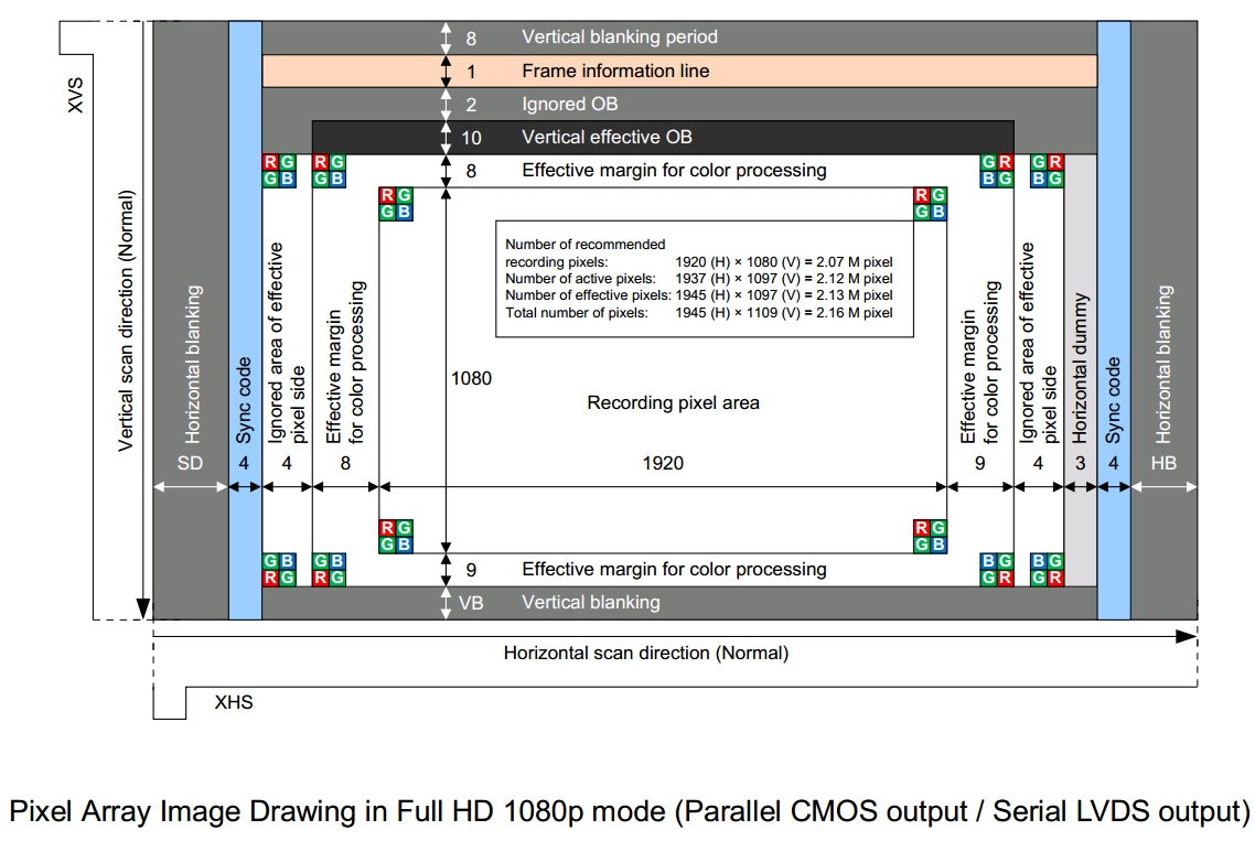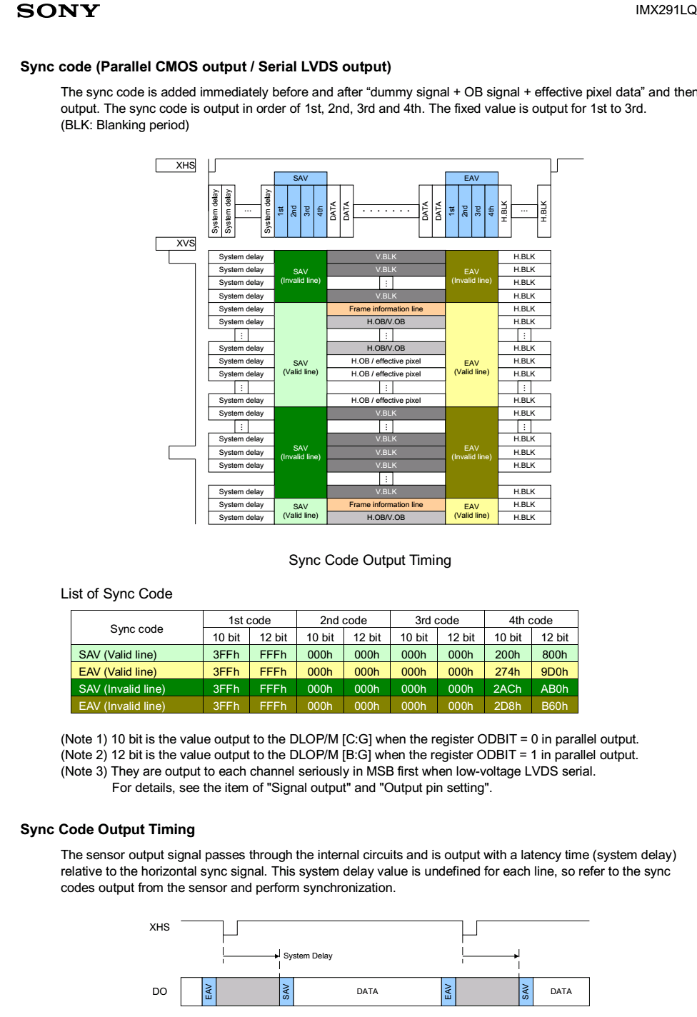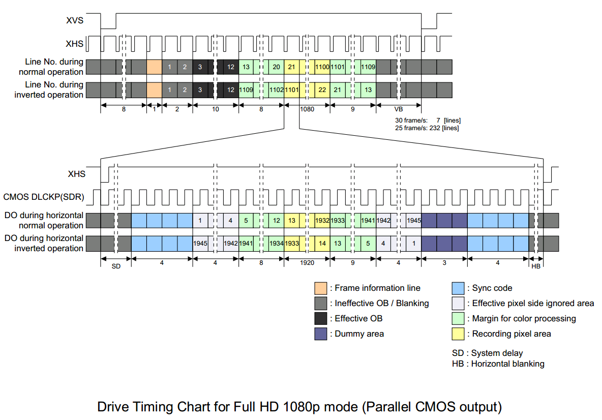 IMX291:Parallel CMOS output, 10bit, 1945x1097, Full HD 1080p, 30fps, 74.25Mpixel/s