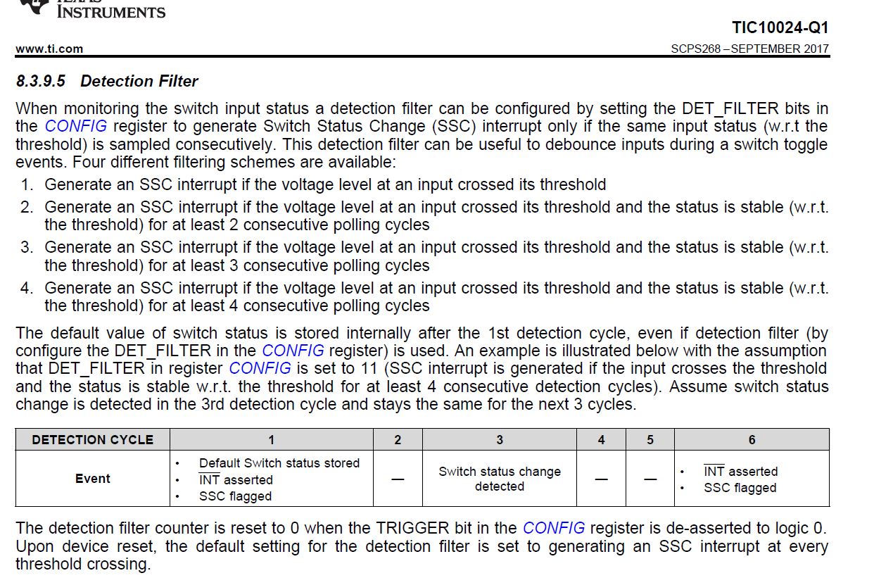Good afternoon, I have a customer looking into using the TIC10024-Q1 and they are interested to understand - does the IN_STAT_COMP register latch when a switch state change occurs?