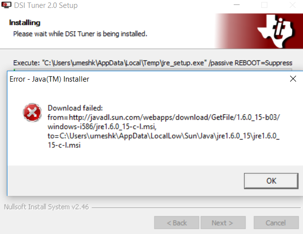 I wanted to install DSI tuner application on windows 10. But I am not able to install because the software complains about not able to download jre.