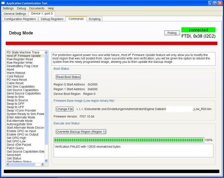 we were already in contact regarding the flashing via TPS65987. With your last idea we got further: